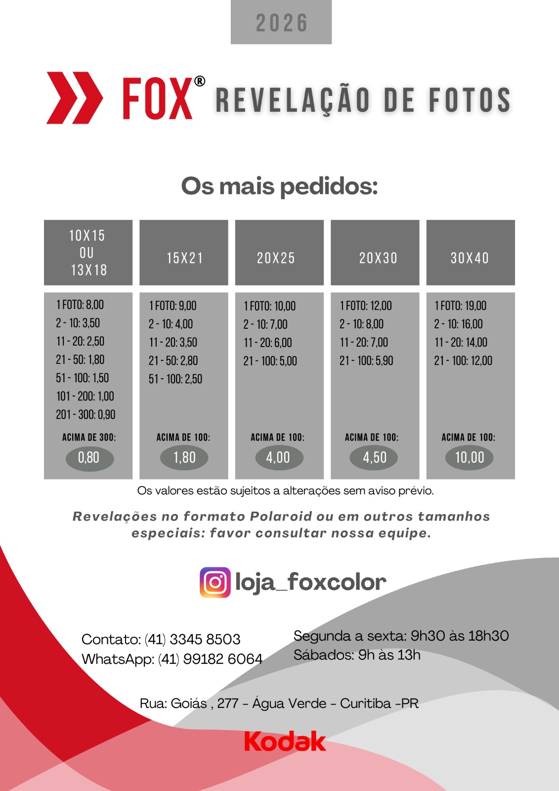 Na Fox Color, oferecemos soluções completas em fotografia e imagem, com qualidade profissional, atendimento humano e cuidado em cada detalhe. Atuamos desde a revelação até serviços especializados, sempre respeitando a história por trás de cada fotografia.